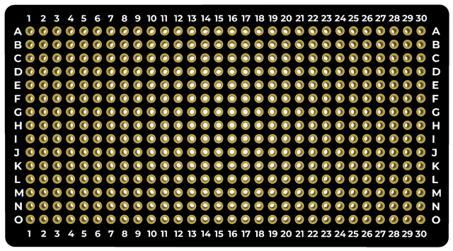 It is a thin, rigid sheet with holes pre-drilled at standard intervals across a grid, usually a square grid of 2.54 mm (0.1 in) spacing. These holes are ringed by round or square copper pads.