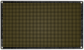 It is a thin, rigid sheet with holes pre-drilled at standard intervals across a grid, usually a square grid of 2.54 mm (0.1 in) spacing. These holes are ringed by round or square copper pads.